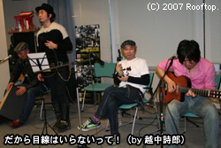 とにかく、今回のイベントに来てくれた人達にはホントに感謝だね。体育座りして俺達の与太話をサンザン聞かされてさ(笑)、それでも楽しんでくれるんだから有り難い限りだよ。まァ、言うなれば学期末のお楽しみ会みたいなもんだよね。俺達も楽しいし、お客さんも楽しいし、こういうイベントはこれからも続けていきたいね。これを読んでるバンドマンも是非やってみたらイイと思うよ!